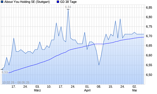 Mit dem Anstieg auf 6,71 EUR hat die About You-Aktie am 07.05.2025 die 38-Tage-Linie nach oben gekreuzt.