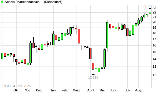 Mit dem Anstieg auf 22,69 EUR hat die Acadia Pharmaceuticals-Aktie (ISIN US0042251084) am 28.08.2025 ein neues 12-Monats-Hoch erreicht und damit den Kurs vom 27.08.2025 eingestellt.