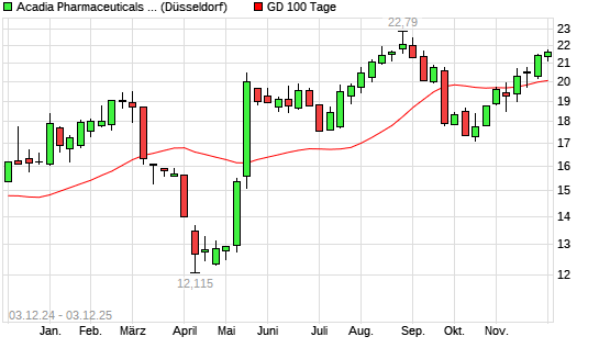 Mit dem Rücksetzer auf 19,88 EUR hat die Acadia Pharmaceuticals-Aktie am 02.12.2025 die 100-Tage-Linie nach unten gekreuzt.