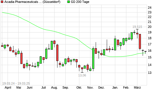 Mit dem Rücksetzer auf 15,60 EUR hat die Acadia Pharmaceuticals-Aktie am 18.03.2025 die 200-Tage-Linie nach unten gekreuzt.