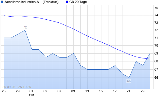 Mit dem Anstieg auf 69,00 EUR hat die Accelleron Industries AG-Aktie am 24.10.2025 die 20-Tage-Linie nach oben gekreuzt.Der Abstand zur 200-Tage-Linie beträgt aktuell +0,00%. ...weiterlesen
