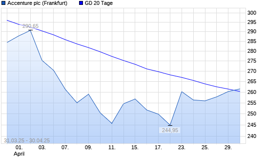 Mit dem Anstieg auf 260,25 EUR hat die Accenture-Aktie am 29.04.2025 die 20-Tage-Linie nach oben gekreuzt.