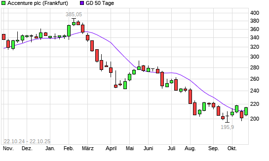 Mit dem Anstieg auf 216,20 EUR hat die Accenture-Aktie am 21.10.2025 die 50-Tage-Linie nach oben gekreuzt.