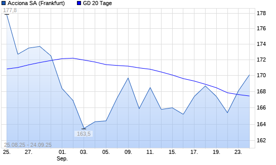 Mit dem Anstieg auf 168,10 EUR hat die Acciona-Aktie am 23.09.2025 die 20-Tage-Linie nach oben gekreuzt.