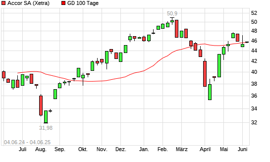 Mit dem Anstieg auf 45,69 EUR hat die Accor-Aktie am 03.06.2025 die 100-Tage-Linie nach oben gekreuzt.