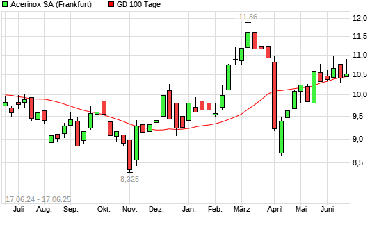 Mit dem Anstieg auf 10,61 EUR hat die Acerinox-Aktie am 16.06.2025 die 100-Tage-Linie nach oben gekreuzt.