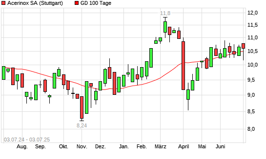 Mit dem Anstieg auf 10,66 EUR hat die Acerinox-Aktie am 02.07.2025 die 100-Tage-Linie nach oben gekreuzt.