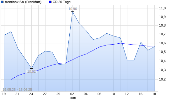 Mit dem Rücksetzer auf 10,52 EUR hat die Acerinox-Aktie am 17.06.2025 die 20-Tage-Linie nach unten gekreuzt.