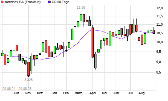 Mit dem Rücksetzer auf 10,52 EUR hat die Acerinox-Aktie am 28.08.2025 die 50-Tage-Linie nach unten gekreuzt.