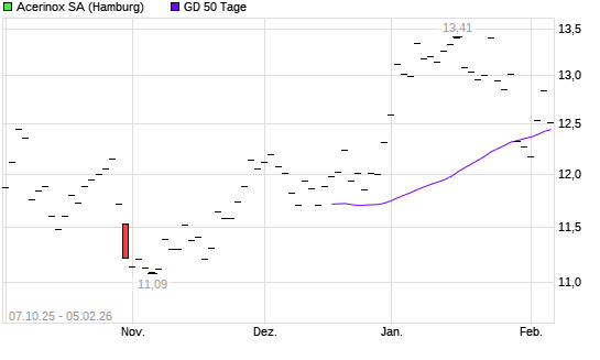 Mit dem Rücksetzer auf 12,41 EUR hat die Acerinox-Aktie am 04.02.2026 die 50-Tage-Linie nach unten gekreuzt.