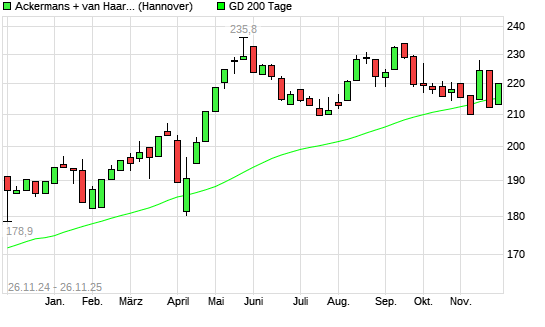 Mit dem Anstieg auf 215,60 EUR hat die Ackermans + van Haaren-Aktie am 25.11.2025 die 200-Tage-Linie nach oben gekreuzt.