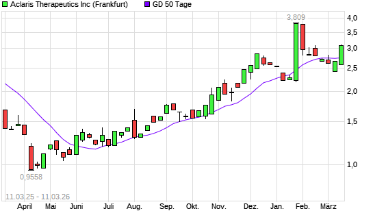 Mit dem Anstieg auf 2,90 EUR hat die Aclaris Therapeutics-Aktie am 10.03.2026 die 50-Tage-Linie nach oben gekreuzt.