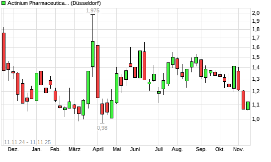 Mit dem Rücksetzer auf 1,07 EUR hat die Actinium Pharmaceuticals-Aktie (ISIN US00507W2061) am 10.11.2025 ein neues 6-Monats-Tief erreicht und damit den Kurs vom 07.11.2025 eingestellt.
