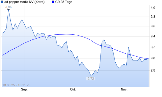 Mit dem Anstieg auf 3,00 EUR hat die Ad Pepper Media-Aktie am 17.11.2025 die 38-Tage-Linie nach oben gekreuzt.
