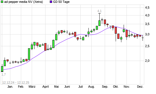 Mit dem Anstieg auf 2,90 EUR hat die Ad Pepper Media-Aktie am 11.12.2025 die 50-Tage-Linie nach oben gekreuzt.