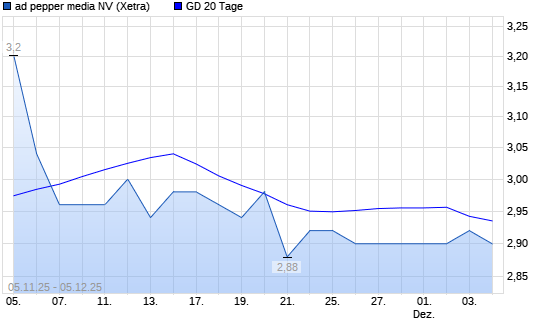 Mit dem Rücksetzer auf 2,76 EUR hat die Ad Pepper Media-Aktie am 04.12.2025 die 20-Tage-Linie nach unten gekreuzt.