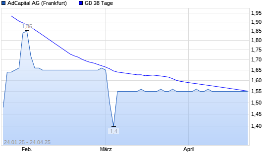 Mit dem Anstieg auf 1,55 EUR hat die AdCapital-Aktie am 23.04.2025 die 38-Tage-Linie nach oben gekreuzt.