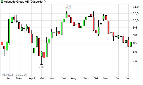Mit dem Rücksetzer auf 8,41 EUR hat die Addnode Group-Aktie (ISIN SE0017885767) am 07.01.2026 ein neues 6-Monats-Tief erreicht und damit den Kurs vom 06.01.2026 eingestellt.