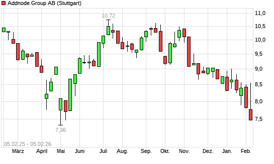 Mit dem Rücksetzer auf 7,63 EUR hat die Addnode Group-Aktie (ISIN SE0017885767) am 04.02.2026 ein neues 6-Monats-Tief erreicht und damit den Kurs vom 02.02.2026 eingestellt.