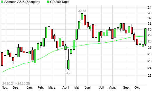 Mit dem Anstieg auf 29,76 EUR hat die Addtech AB-Aktie am 23.10.2025 die 200-Tage-Linie nach oben gekreuzt.