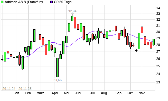 Mit dem Anstieg auf 28,88 EUR hat die Addtech AB-Aktie am 28.11.2025 die 50-Tage-Linie nach oben gekreuzt.