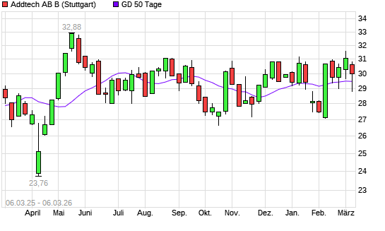 Mit dem Anstieg auf 29,62 EUR hat die Addtech AB-Aktie am 05.03.2026 die 50-Tage-Linie nach oben gekreuzt.