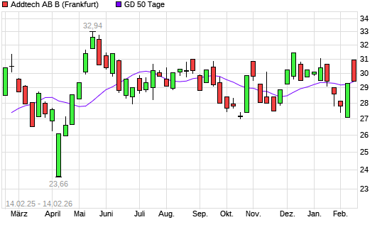 Mit dem Rücksetzer auf 29,46 EUR hat die Addtech AB-Aktie am 13.02.2026 die 50-Tage-Linie nach unten gekreuzt.