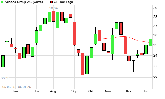 Mit dem Anstieg auf 25,04 EUR hat die Adecco-Aktie am 05.01.2026 die 100-Tage-Linie nach oben gekreuzt.