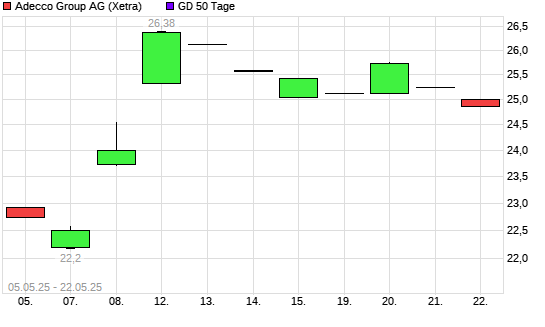 Mit dem Anstieg auf 25,32 EUR hat die Adecco-Aktie am 21.05.2025 die 50-Tage-Linie nach oben gekreuzt.
