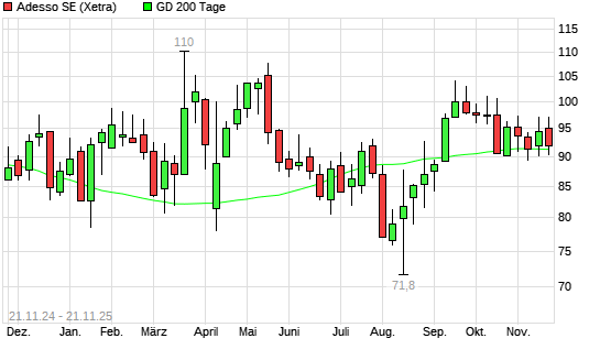 Mit dem Anstieg auf 92,90 EUR hat die Adesso-Aktie am 20.11.2025 die 200-Tage-Linie nach oben gekreuzt.