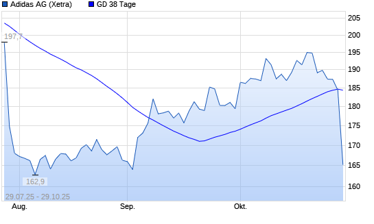 Mit dem Rücksetzer auf 184,05 EUR hat die Adidas-Aktie am 28.10.2025 die 38-Tage-Linie nach unten gekreuzt.