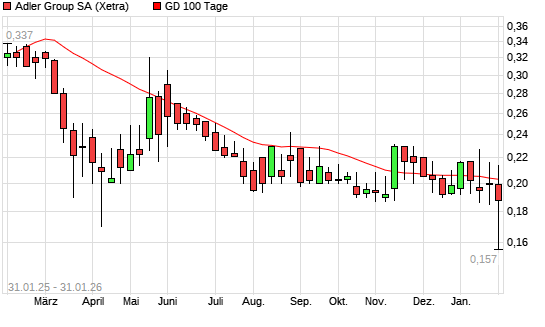 Mit dem Anstieg auf 0,20 EUR hat die Adler-Aktie am 30.01.2026 die 100-Tage-Linie nach oben gekreuzt.