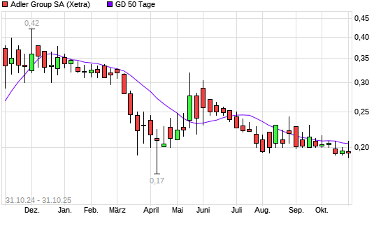 Mit dem Rücksetzer auf 0,19 EUR hat die Adler-Aktie am 30.10.2025 die 50-Tage-Linie nach unten gekreuzt.