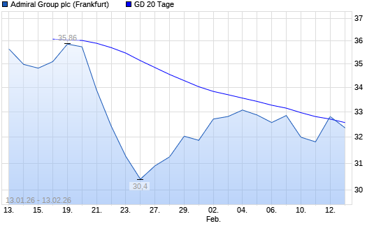 Mit dem Anstieg auf 32,82 EUR hat die Admiral Group-Aktie am 12.02.2026 die 20-Tage-Linie nach oben gekreuzt.
