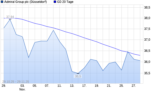 Mit dem Rücksetzer auf 36,30 EUR hat die Admiral Group-Aktie am 28.11.2025 die 20-Tage-Linie nach unten gekreuzt.