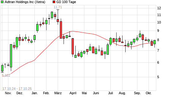 Mit dem Anstieg auf 7,86 EUR hat die Adtran-Aktie am 16.10.2025 die 100-Tage-Linie nach oben gekreuzt.