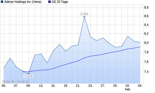 Mit dem Anstieg auf 8,06 EUR hat die Adtran-Aktie am 03.02.2026 die 20-Tage-Linie nach oben gekreuzt.