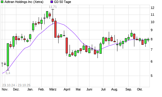 Mit dem Anstieg auf 7,91 EUR hat die Adtran-Aktie am 22.10.2025 die 50-Tage-Linie nach oben gekreuzt.
