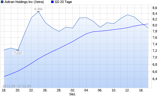 Mit dem Rücksetzer auf 7,81 EUR hat die Adtran-Aktie am 16.12.2024 die 20-Tage-Linie nach unten gekreuzt.