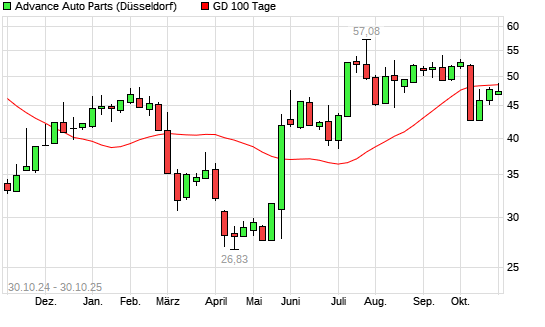 Mit dem Anstieg auf 48,87 EUR hat die Advance Auto Parts-Aktie am 29.10.2025 die 100-Tage-Linie nach oben gekreuzt.