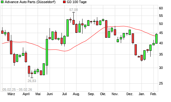 Mit dem Anstieg auf 42,74 EUR hat die Advance Auto Parts-Aktie am 04.02.2026 die 100-Tage-Linie nach oben gekreuzt.