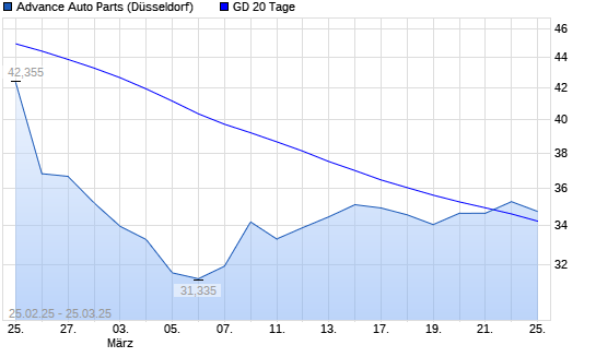Mit dem Anstieg auf 34,70 EUR hat die Advance Auto Parts-Aktie am 24.03.2025 die 20-Tage-Linie nach oben gekreuzt.