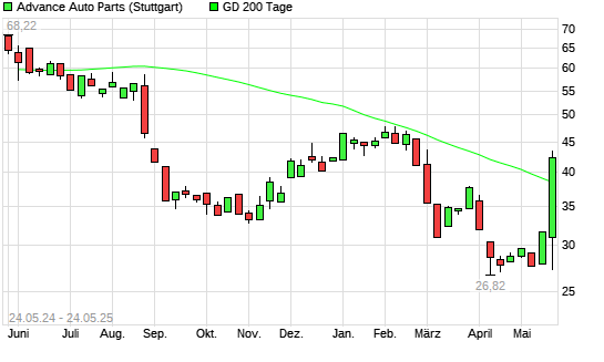 Mit dem Anstieg auf 41,43 EUR hat die Advance Auto Parts-Aktie am 23.05.2025 die 200-Tage-Linie nach oben gekreuzt.