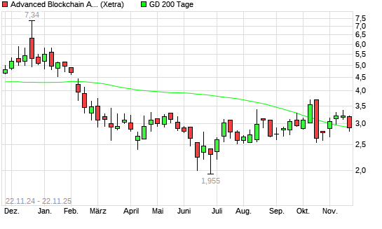 Mit dem Anstieg auf 2,86 EUR hat die Advanced Blockchain-Aktie am 21.11.2025 die 200-Tage-Linie nach oben gekreuzt.