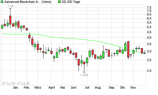 Mit dem Rücksetzer auf 2,84 EUR hat die Advanced Blockchain-Aktie am 26.11.2025 die 200-Tage-Linie nach unten gekreuzt.