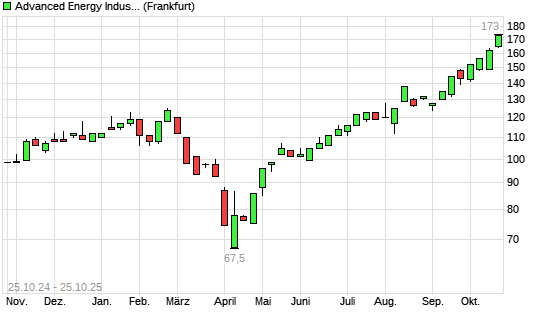 Mit dem Anstieg auf 173,00 EUR hat die Advanced Energy Industries-Aktie (ISIN US0079731008) am 24.10.2025 ein neues All-Time-High erreicht und damit den Kurs vom 21.10.2025 eingestellt.