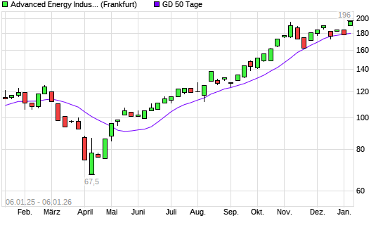 Mit dem Anstieg auf 193,00 EUR hat die Advanced Energy Industries-Aktie am 05.01.2026 die 50-Tage-Linie nach oben gekreuzt.