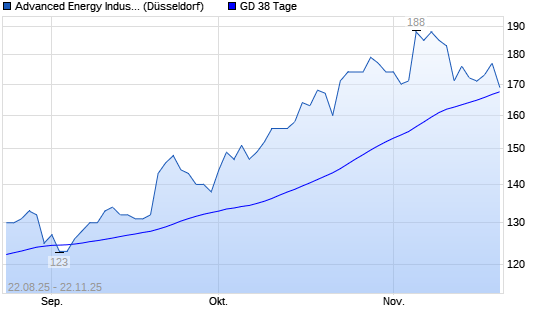 Mit dem Rücksetzer auf 163,00 EUR hat die Advanced Energy Industries-Aktie am 21.11.2025 die 38-Tage-Linie nach unten gekreuzt.