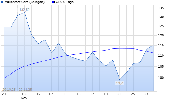 Mit dem Anstieg auf 111,92 EUR hat die Advantest-Aktie am 28.11.2025 die 20-Tage-Linie nach oben gekreuzt.