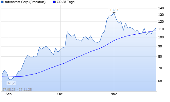Mit dem Anstieg auf 108,92 EUR hat die Advantest-Aktie am 26.11.2025 die 38-Tage-Linie nach oben gekreuzt.